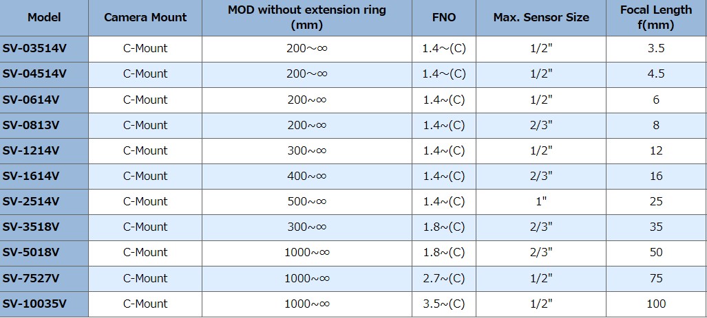 CCTV Lens -- SV-V Series